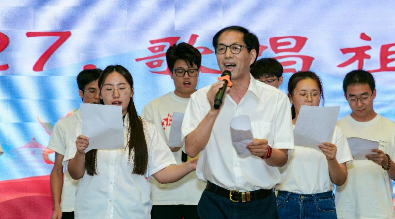 邹小伟老师与员工一起演唱《歌唱祖国》