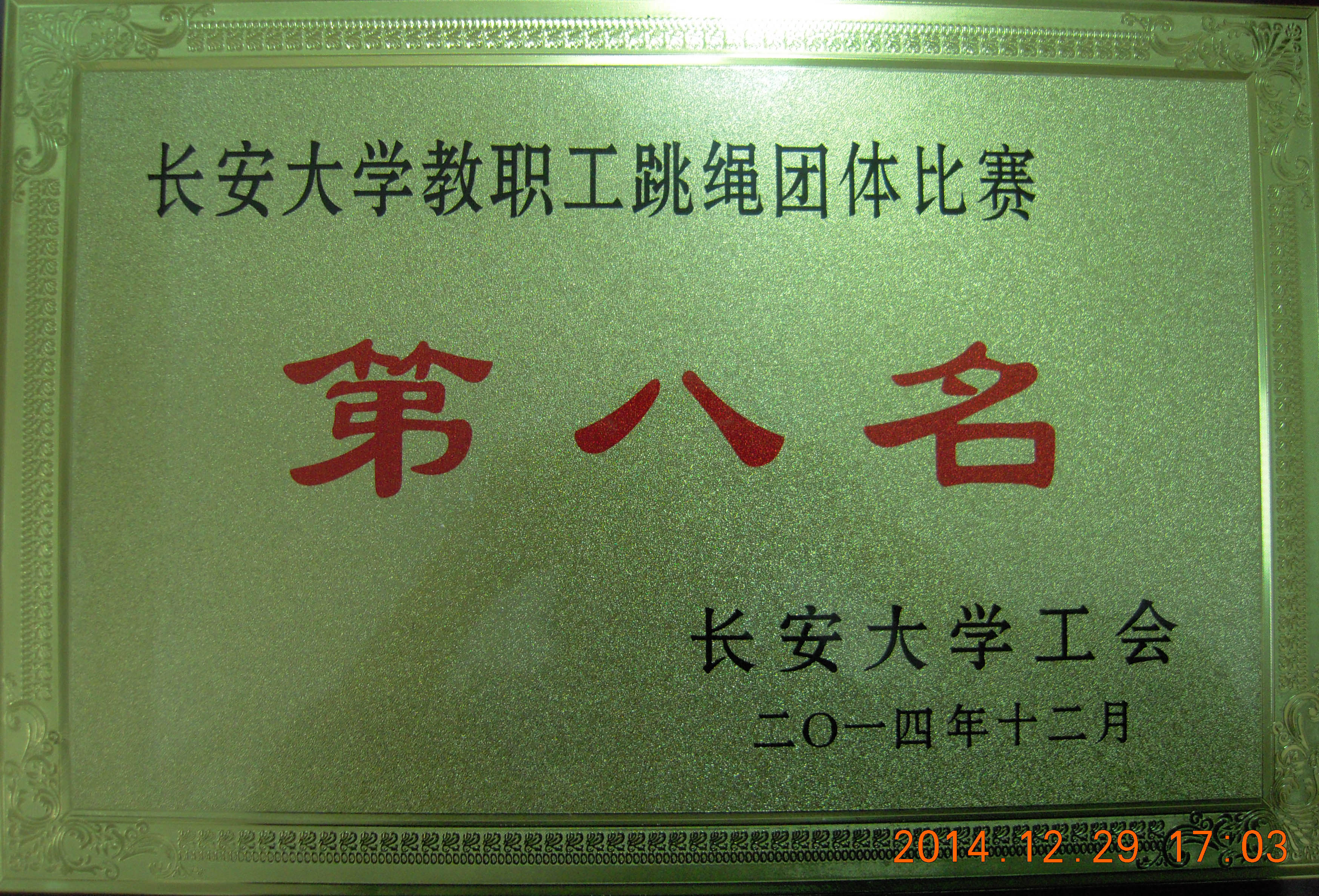 2014年12月29日下午四点,在校本部北院体育馆北侧篮球场举行了yl7703永利集团“迎新年”教职工跳绳团体比赛。公司教师积极参与,16人循环2分钟计时跳154次,总成绩名列第八名。