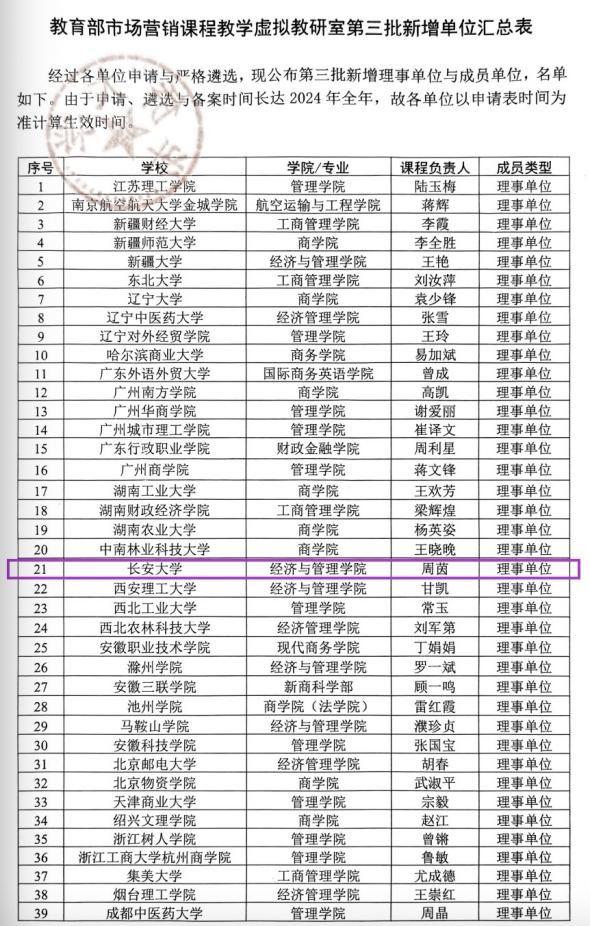 近日,教育部市场营销课程教学虚拟教研室正式公布了第三批理事单位名单,公司市场营销学课程经过遴选加入了教育部市场营销课程教学虚拟教研室,成为理事单位。该虚拟教研室是目前获批教育部的全国唯一国家级市场营销课程教学虚拟教研室,致力于促进优质教学资源共享,实现跨地域、跨学科的深度合作与交流。
