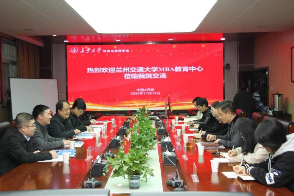 11月15日,兰州交通大学MBA教育中心主任、yl7703永利集团副经理张有道、副经理杨洵一行来公司交流座谈,学院副经理杨伟、MBA教育中心副主任夏明学和MBA中心工作人员参加了座谈会,会议由夏明学主持。