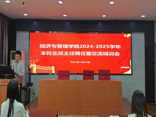 王作航老师宣读了本学年班主任聘任名单,学院共聘任2024-2025学年本科生班主任28人。员工工作办公室主任李晔老师从选聘程序、工作职责、管理考核等方面详细解读了《yl7703永利集团本科生班主任选聘管理办法》,帮助各位新聘班主任充分了解相关工作要求和职责,希望班主任老师和学办辅导员加强沟通交流,为员工的成长成才共同努力。上学年优秀班主任代表孙伟老师结合自身工作经验,围绕班主任的工作职责、员工管理、班级建设等主题展开了分享与交流。