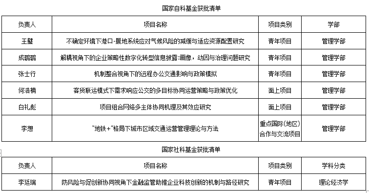 2024年度国家自然科学基金和国家社会科学基金项目立项名单已经公示,学院获得6项国家自然科学基金项目(其中1项重点国际(地区)合作与交流项目、2项面上项目、3项青年项目)、1项国家社会科学基金青年项目立项。此外学院还获批2024年度教育部人文社会科学项目4项。