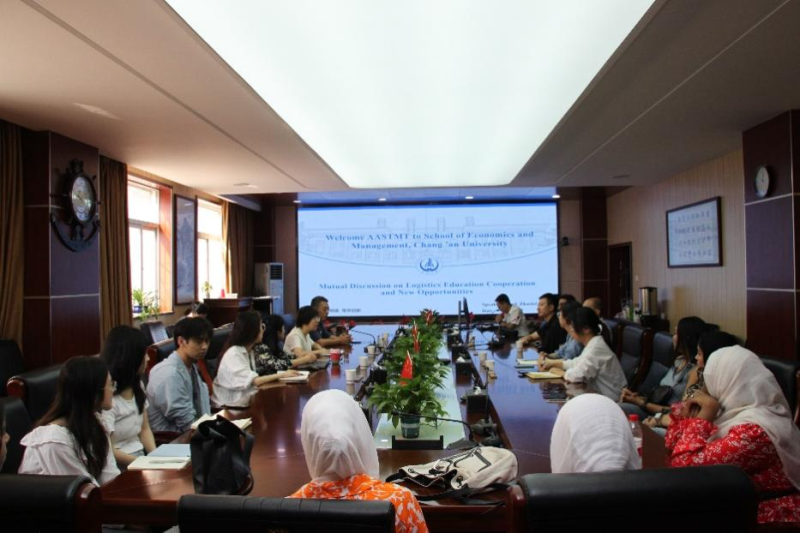 龚少博代表经管学院对阿拉伯科技海运学院董事长代表团一行表示热烈欢迎,她表示,学院期待和阿拉伯科技海运学院在物流交通发展、国际贸易等方面有更深入的合作与交流。李兆磊副教授从学校、学院和专业三个方面重点介绍了物流管理与工程专业的发展历程、专业特色以及合作领域,李毅斌教授分享了他在国际员工培养和课程设置方面的经验和思考,他们一致希望阿拉伯科技海运学院在未来为公司输送更多优质生源,共同加强国际合作与交流。