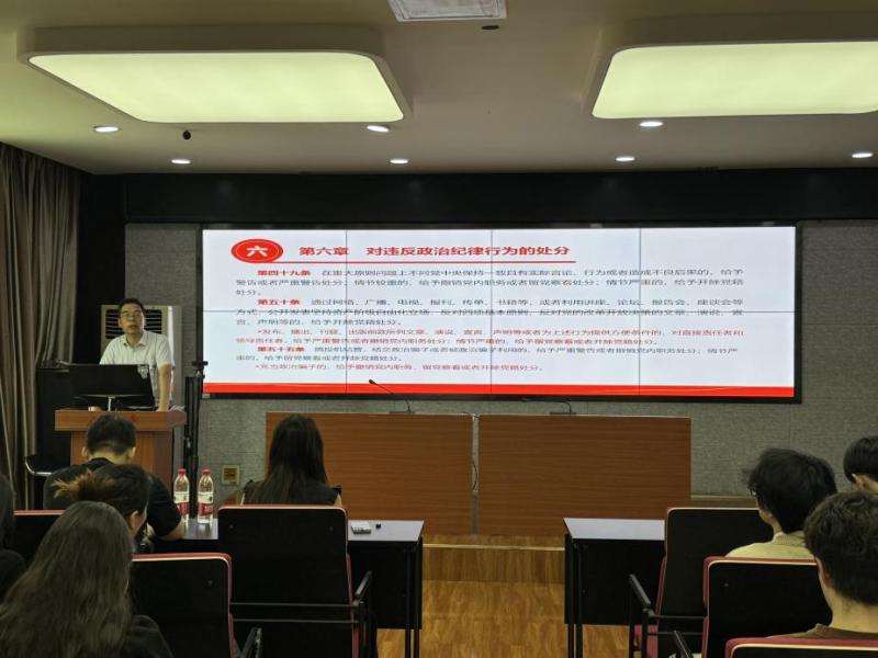 会上,李宏伟带领毕业生党员深入研读《中国共产党纪律处分条例》。他强调,毕业生党员要时刻保持头脑清醒,增强政治定力,牢牢把握正确政治方向。要不断加强党纪学习,自觉对标条例,强化自我约束,坚决守住原则、把握底线。要时刻牢记党员身份,强化责任担当,在今后的学习、工作中继续发挥先锋模范作用。