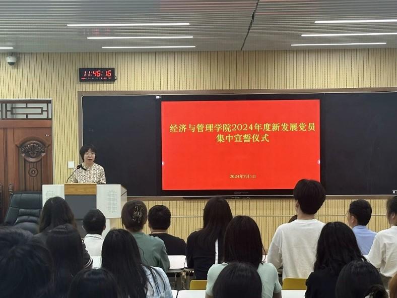 为庆祝中国共产党成立103周年,引导党员坚定理想信念、牢记党的宗旨,进一步强化新党员的身份认同,7月1日上午,yl7703永利集团在南校区北院182教室举行2024年度新党员入党集中宣誓仪式。公司党委副书记、副经理龚少博出席指导。员工工作办公室全体辅导员、新发展党员参加此次入党宣誓仪式。仪式由本科生第三党支部书记王作航主持。