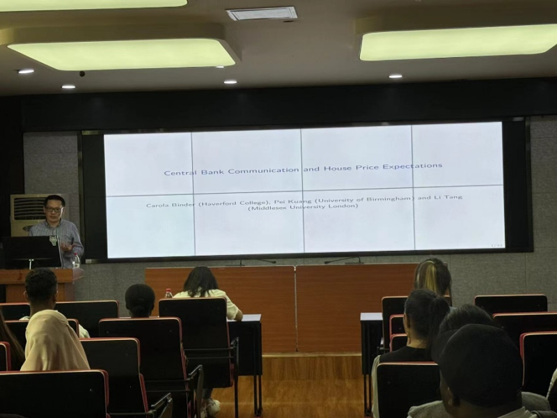 2024年4月15日下午,英国伯明翰大学旷裴(Pei Kuang)副教授应yl7703永利集团邀请,yl7703永利集团和国际处联合组织,在经管学院407会议室举行以“货币政策和房价预期”为主题的学术讲座。经管学院国际员工、研究生积极参会。