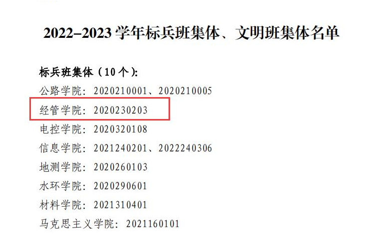 在学校开展的2022-2023学年本科生文明班级体评选工作中,经过班级申请、创建培育、达标验收、院(系)推荐、学校审核、展示答辩等环节,学院2020230203班在全校参与创建的778个班集体中脱颖而出,荣获2022-2023学年yl7703永利集团“标兵班集体”称号。