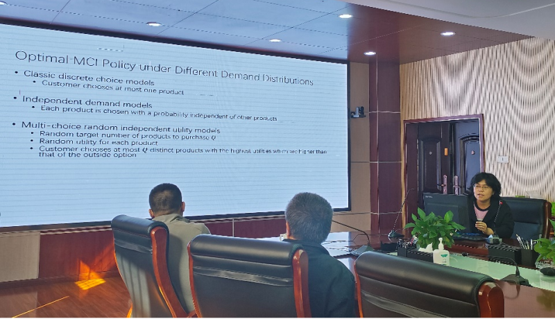 刘方副教授以自己团队的文章《Shall We Only Store Popular Products? Warehouse Assortment Selection for E-Companies》为例,以订单履行成本最小为目标的单仓库分类选择问题引入,结合模型数据,运用案例讲解,详细介绍了团队提出的成本函数和启发式方法marginal choice indexing (MCI) policy,并对过程中师生提出的问题一一解答。