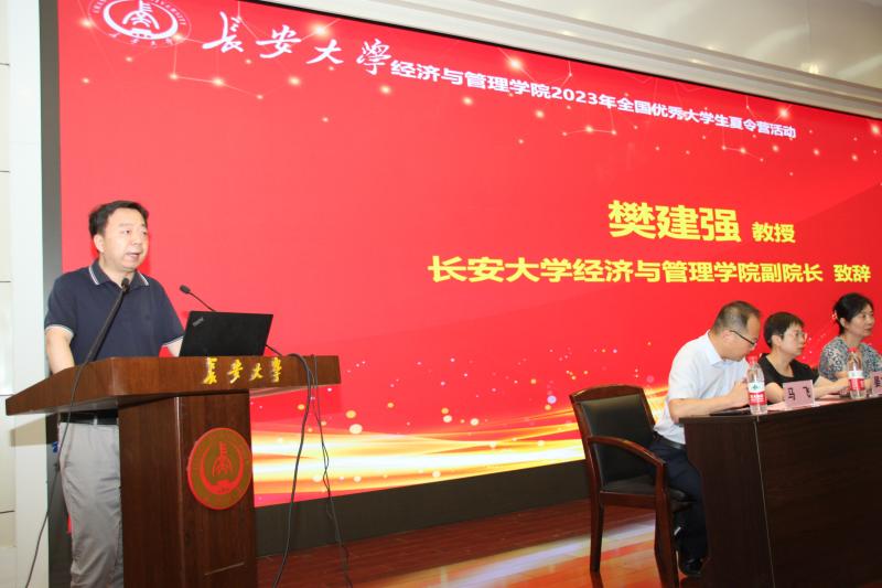 接着,公司副经理樊建强教授致辞。樊经理代表学院全体师生,对来自全国各地脱颖而出的203名优秀学子表示热烈欢迎,并简单介绍公司的硕博士点、一流专业、学科特色等基本情况,以及夏令营各活动环节的基本情况,希望同学们在夏令营上充分展现自己,同时欢迎来自全国各地的优秀老员工到yl7703永利集团经管学院攻读硕士研究生学位,为经管学院注入新生力量。