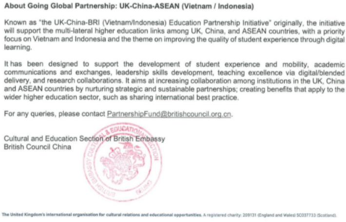 图 2020 UK-China-BRI (Vietnam/Indonesia) Education Partnership Initiative国际联合项目