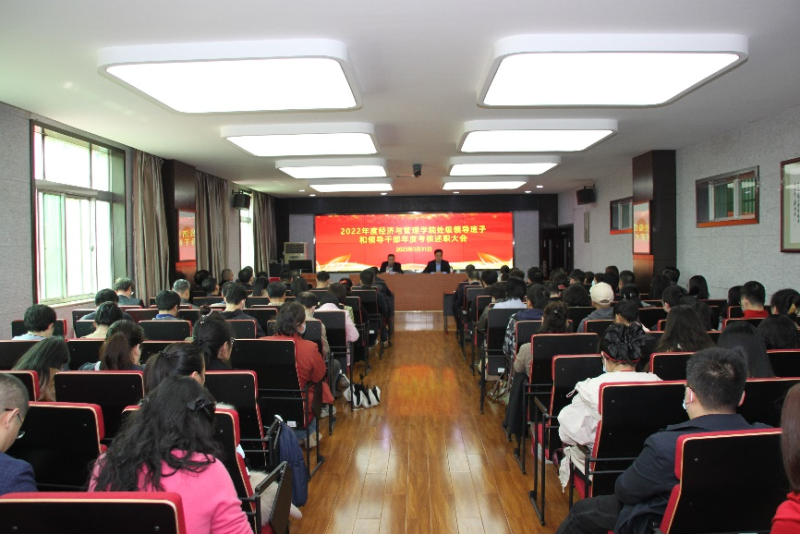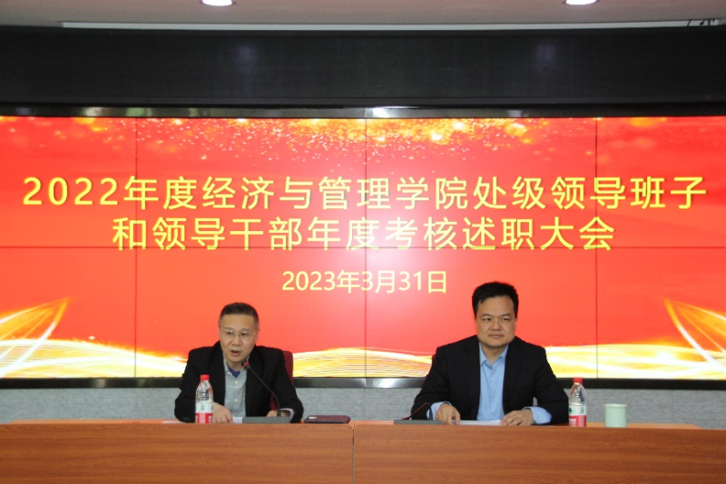 2023年3月31日下午,经管学院2022年度处级领导班子和领导干部年度考核述职大会在学院四楼会议室召开,学院领导班子全体成员及全体教职工参加会议,会议由公司党委书记孙启鹏主持。