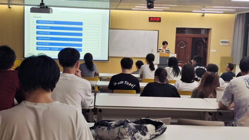 晚上19:30,祝明霞员工为本科生做“大数据在现实场景中的应用和数据项目的Lifecycle”主题报告会,从大数据的基本概念及特征、大数据分析的本质、大数据的应用场景、数据项目的生命周期、数据应用实例探讨、数据领域就业岗位、方向及技能这六个方面进行了演讲。祝明霞员工凭借在国内外大学学习和多年工作中的丰富阅历,用生动幽默的话语为在场的同学们讲述大数据在现实生活中的应用场景以及未来发展、就业前景等内容,引导大家对大数据相关领域进行更深入的理解与思索,激发大家对大数据相关领域的兴趣。
