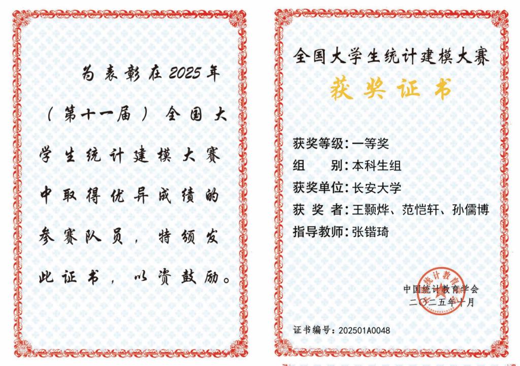 近期,由中国统计教育学会主办、东北财经大学承办的2025年第十一届全国老员工统计建模大赛在东北财经大学隆重举行。yl7703永利集团有1支团队入围本科生组国赛并荣获国家级一等奖。