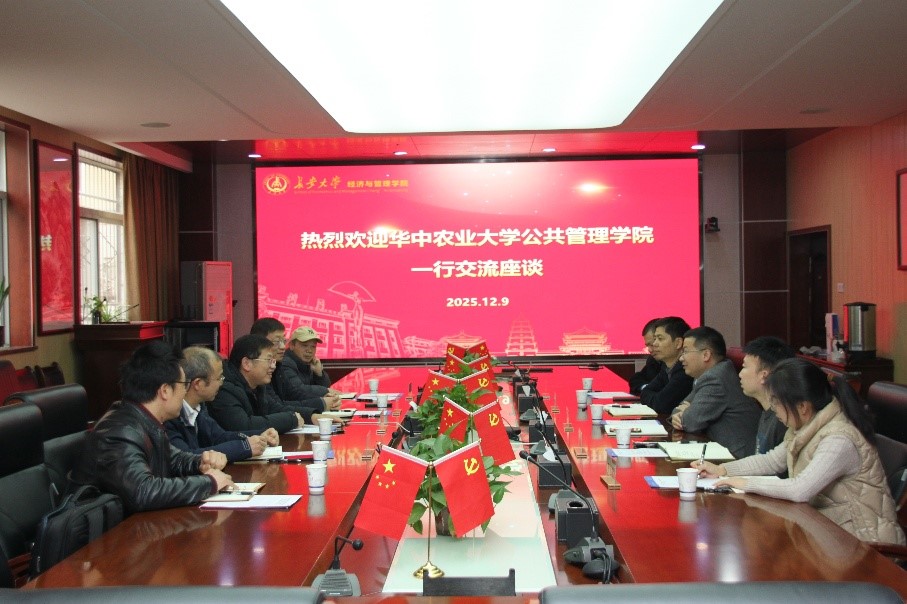 白礼彪对华中农业大学公共管理学院一行的到来表示热烈欢迎,并介绍了学院的发展历程、团队队伍、专业设置及实验室建设等方面的基本情况。周向阳介绍了华中农业大学公共管理学院的办学特色与发展成效,并对yl7703永利集团经管学院在团队建设与人才培养方面取得的成果给予高度评价。