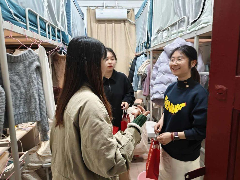 12月10日晚上,学院领导、毕业年级辅导员与员工志愿者轻步走访考研学子宿舍,与备考学子们亲切交谈,详细询问复习进度、备考状态及生活需求,反复叮嘱学子们注意防寒保暖、合理规划作息,以饱满精神与良好心态迎接考试。