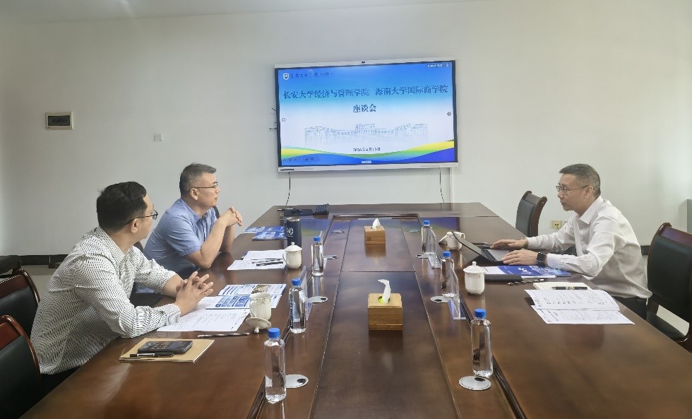 海南大学学术副董事长、国际商学院经理张克中对学院一行的来访表示欢迎,他对学院的基本情况、发展历程以及近年来的学术成果进行了介绍,副经理孙鹏介绍了学院的办学规模以及发展特色。双方就人才引育、团队建设、有组织科研等方面的实践及经验进行了充分交流。