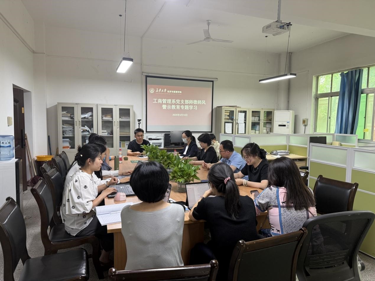 为深入贯彻落实新时代教育方针,强化教师职业道德建设,工商管理系党支部于5月14日组织全体教师开展了师德师风警示教育专题学习活动,旨在进一步提升教师的师德修养,营造风清气正的教育环境。会议由党支部书记周茵主持。