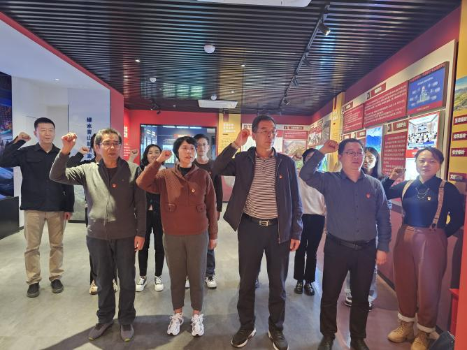 在警示教育基地,大家依次参观“国之大者”“中华祖脉”等7个展厅,全方位了解了秦岭违建整治始末。参观结束后,李宏伟副书记作为领誓人,带领全体党员面对党旗,高举右拳庄严宣誓,重温入党誓词,感悟初心使命。