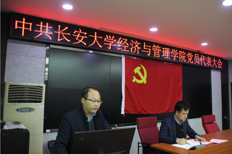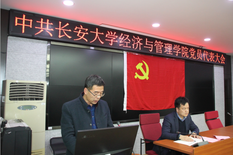 大会在庄严的《中华人民共和国国歌》中开始。公司党委书记魏一虎代表学院上届党委做工作报告。报告回顾了经管学院过去五年内的各项工作和取得的成绩,对下一届党委工作提出了建议。