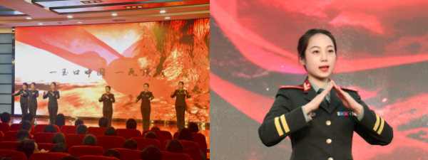 紧接着,宣讲团成员为观众带来手语歌曲表演—《国家》,优美而整齐的手语表演以及激昂的歌曲,激起了同学们心中的爱国热血。宣讲团成员通过声情并茂的演讲《团结就是力量》为现场师生介绍了中国共产党是如何团结一心抵抗侵略和成立新中国的艰苦奋斗历程。报告会在宣讲团成员与全场师生齐唱《团结就是力量》的嘹亮歌声中圆满结束。