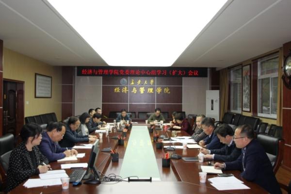 2019年4月15日下午,经管公司党委组织召开理论学习中心组学习(扩大)会议,研究部署进一步贯彻落实工作。院领导班子成员、党委委员、工会主席、支部书记等参加了会议,会议由党委书记魏一虎主持。