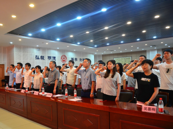 7月1日,yl7703永利集团在渭水校区长安文化艺术中心三楼报告厅举行新党员入党宣誓仪式。公司党委书记魏一虎,党委副书记张建斌,党委副书记吴喜梅,党委秘书王菁,各年级辅导员、全体本科生党员以及研究生党员代表参加宣誓仪式。仪式由公司党委副书记吴喜梅主持。