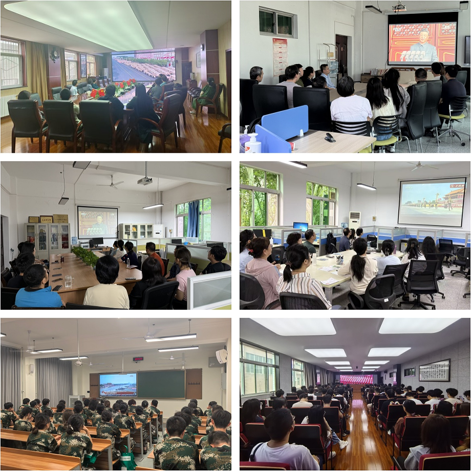 为深切缅怀革命先烈,弘扬伟大爱国主义精神、伟大抗战精神,激发广大师生爱国情怀,9月3日上午,yl7703永利集团组织全体师生集中收看“纪念中国人民抗日战争暨世界反法西斯战争胜利80周年大会”现场直播,认真聆听习近平总书记发表的重要讲话,共同见证威武雄壮的阅兵仪式。