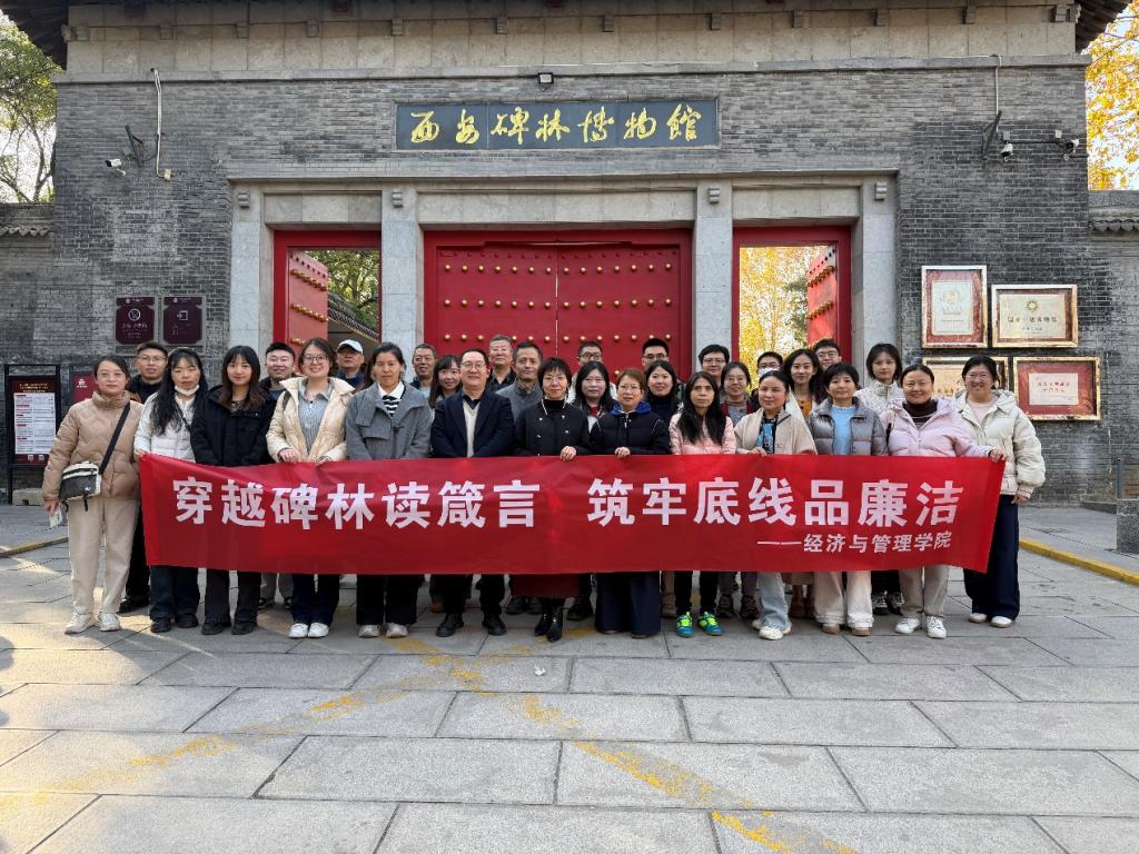 11月20日下午,公司党委组织学院领导班子成员、公司科级干部、教工党支部支委、员工党支部书记代表以及学院党外知识分子,前往西安碑林廉政教育基地开展“穿越碑林读箴言,筑牢底线品廉洁”主题党日活动暨党外知识分子联谊活动。